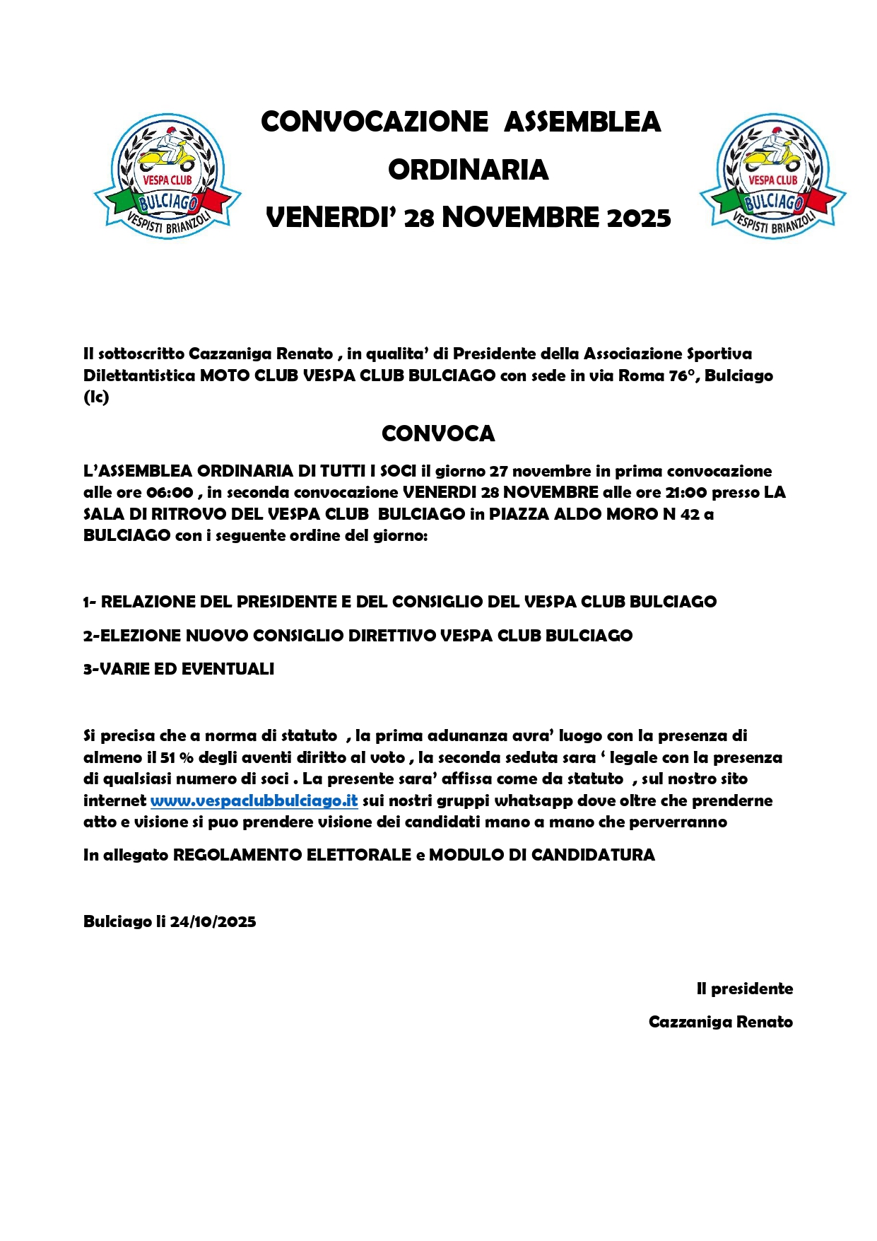 sotto la convocazione trovate in pdf regolamento elettorale e il modulo per la candidatura al consiglio